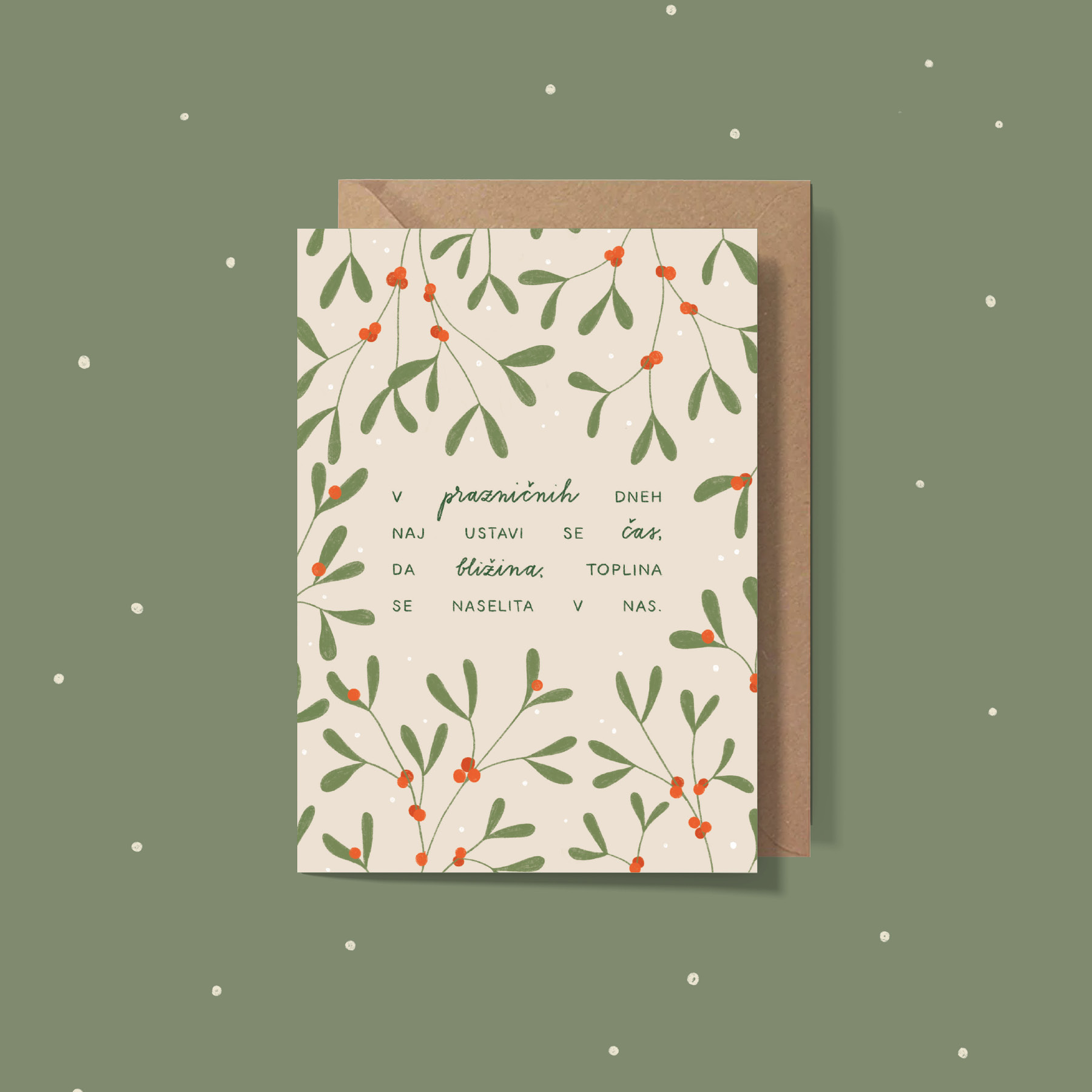 Ilustracijo spremlja napis "V prazničnih dneh naj ustavi se čas, da bližina, toplina se naselita v nas."